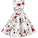 【Chic Print Flower】We have four flower print patterns. Girls black dress with red flower. White vintage Dress with red rose. White fancy dress with Blue Pink daisy for teens. Navy blue dress with yellow daisy flower for kids. This elegant floral vintage dress is good for summer,autumn, winter and spring. good for girls age 5 -10 years.