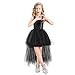 ❤Unique Design: Sleeveless shiny sequin tops with the high low design tulle skirt make your sweet girls looks stylish and cute at any parties, and it is also the first choice for the adorable easy Halloween costume like witch, vampire, angel devil, grim reaper, you can match this girls high low tutu dress with black wings, gloves, hats and more to match the various characters of Halloween.