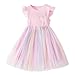 Design: Ribbed knit top, with flutter sleeve, stitching rainbow mesh skirt for kids to wear, cute and fashionable, and A line style make this dress more elegant and slim