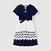 Unique Design: Short Sleeve, Round Neck, Button Front, Striped Print Ruffle Splicing Dress with Bowknot, Casual Navy Blue Color. Men's and Boy's Striped T-shirts have excellent breathable fabric ideal for summer weather.