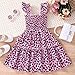 Stylish Design:leopard print,girls ruffle dress,flutter sleeve,elastic closure,purple color outfits,swing,twirl dress,below the knee,lace edging on a dress,stretchy,Birthday party dress,kids girls summer clothes,princess dress up,toddler girl cute clothing