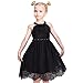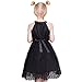 This elegant black lace dress is adorned with rhinestones on the halter and waist, creating a sophisticated and glamorous look. The O-neck halter adds a touch of class, while the formal ball gown style is perfect for special occasions. Ideal for wedding, prom, birthday party, school performance, or any formal event. Following size means age ranges for girls, they are for general guidance only. For most accurate fit, we recommend checking detailed measurement before purchase.