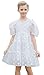 This toddler girls puff sleeves dresses,which features adorable flower patterns,elegant square neck,adjustable ribbon sash,A-line hemline and knee length design, invisible zipper at back.Appropriate size of square neck,ensures your baby girls privacy.