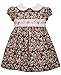 Choose from beautiful new styles including rose flutter sleeved solid gauze empire with smocked inset and pierot collar, gray smocked floral dress with rounded collar and more. All are machine washable. Sizes newborn to 24 months also come with matching panty.