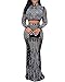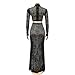 Long sleeve 2 Piece outfit. Unique sexy bodycon mesh see through rhinestone maxi dress + inner briefs, sexy and skinny fitting cutting, show your confidence and charm. Glitter rhinestone decoration, let you be the focus of everyone.