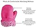 EASY TO PUT ON AND STAYS ON: The hat features a hook and loop chin strap that is easy to apply and allows for a secure fit on your child's head whether playing outside or bundled up in a stroller. The mittens are designed with elastic in the wrist area, which widens and allows for an easy-on fit. These accessory sets are great for active little kids who love playing around outside!