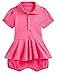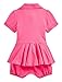 Concealed ring snaps at the hem. Elasticized cuffs. Cotton Polo collar. Three-button placket. Puffed short sleeves.