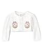 FEATURES — 100% combed cotton, buttons at back, non-functional jacquard bow at neck, long sleeves and ribbed crew neck, sleeve cuffs and hem