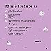 MADE WITHOUT. Our shampoo & wash is made without phthalates, parabens, artificial fragrance and common allergens (gluten, peanuts and soy). Basically, it's made with the good stuff.