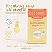 DISSOLVING SOAP TABLETS create delicate suds to ease irritation while gently cleansing. The concentrated tablet is blended with chamomile oil to help soothe sensitive scalp, skin, and hair.