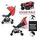 FOOT-ACTIVATED BRAKE: The black and red collapsible umbrella stroller is equipped w/ foot activated parking brake allowing you to gain full control and ensuring your child’s safety when in full stop and locking front wheels for straight strolling
