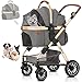 【All-round Consideration Functions】 The aircraft grade aluminum structure is corrosion-resistant,wear-resistant and scratch-resistant.This high-level pet stroller uses the same material as the baby stroller and achieves light weight with full functions.It’s suitable for young or old pets and medium-sized.You can free from the worry of dirty hair or pets getting sick in extreme weather such as dust, rain and snow, too hot weather etc.