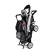 SMOOTH RIDE: 16-inch back wheels with suspension, 12-inch puncture-proof front wheel with swivel lock | Rear brake | Adjustable leatherette handle with safety tether | Swing away child tray for easy loading | Quick release back tires for compact fold