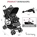 👶【Adjustable Canopy & Backrest】Comes with 5-positions adjustable backrest, this compact stroller for toddlers enables baby to freely lie, sit, or sleep and the 5-point safety harness will firmly secure baby when moving. And the adjustable canopy in 3-section can well protect your baby from ultraviolet radiation and accidental rain.