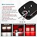 HARDWIRED with 4 color Wires: White Wire-Ground; White+Yellow, 18 white Leds work as back up light; White+Black, 16 Red Leds light up in low brightness + 4 White license illuminator works; White+Red,16 Red Leds light up in high brightness;