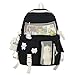 A very kawaii school bag, the pins and plush toys in the picture are all included in the package.(Pin patterns are randomly assigned)