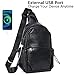 8 Pockets and USB Ports - This leather sling bag has enough room for all your essentials. It has 1 large main zipped pocket, 1 small zipped security pocket, and 1 slip pocket inside; 1 small zipped pocket, and 1 sandwich slip pocket on the front of the bag, 2 side pockets holding water bottles. Great, it also has a USB charger port with a cable included. You can charge your phone anytime