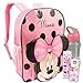 Deluxe Decade West exclusive Minnie Mouse Backpack for Toddlers features padded adjustable shoulder straps and padded back, zip closure front and main compartments, 2 mesh side pockets, and top locker loop for hanging.