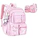 【Material&Waterproof】The kawaii backpack is made of waterproof oxford cloth which is durable, splash proof, tear resistant, scratch resistant performance, helping to protecting your kid's belongings against rain drops in rainy days.and Front zip pocket has cute rainbow embroidery pattern,pink backpack fulfill the little girl's princess dream.