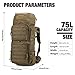 【MATERIAL】- 75 Liters. This military backpack is made of 600D Polyester. YKK Zipper.