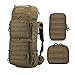 60L Backpack with One front pocket(24*33cm/9.45*13in) and Two side pockets(14*27cm/5.5*10.6in) on the pack, it can hold snacks,flashlight,notebook,gloves,ropes,water bottle and other items. Other tactical pouches or camping gears also can be attached to the molle webbing with hooks.