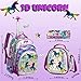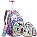 [Girls Rolling Backpack Capacity]3D Unicorn Rolling School backpack set including teens rolling backpack,lunch box and pencil case,backpack contains 1 large main pocket with 2 zipper front pockets;2 mesh pocket for bottle;