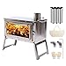【Stainless Steel Camping Stove】--This camp wood stove is made of stainless steel, which is lightweight and withstands high-temperature resistance, suitable for long-term use and easy to carry. Compared to other black metal stoves, our wood stove is not painted so it won't stink even in the first burning, enjoy your outdoor leisure time. Perfect for winter camping, outdoor cooking and hiking.