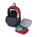 Multiple compartment backpack with zipper closure, including a removable lunchbox bag on front with embroidered graphics on front