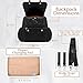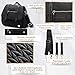 COMFY CARRYING: Padded back panel and shoulder straps provide extra comfort. Dual handles with leather buckle assures easy carrying. Trolley strap also allows the bag to slide over rolling luggages, making your maneuvering through airports easier.