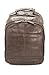 Burnished leather backpack with metal branding and adjustable leather straps