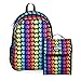 DIMENSIONS: This rainbow hearts bookbag is 17” high, 12” wide, and 5.5” deep
