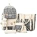 💎Kawaii backpack set:The 5-piece kawaii schoolbag is cute and practical, including the kawaii accessories shown in the picture. A well-deserved choice for girls.Prepares back to school bags set for you, including1*Backpack, 1*Pencil Pouch, 1*Shoulder Bag, 1*Tote Bag, 1* Purse,1*Bear Pendant,3*badge,1* zipper badge