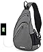USB SLING BACKPACK - Casual daypack backpack with USB charger outside and charging cable inside, convenient to charge any devices while walking( NOT include power bank).