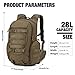 【Durable Backpack】This molle backpack is 28 Liters and is made of 600D Polyester. YKK buckle and zipper.SIZE:10.2*6.3*21.7 in(L*W*H) 0.96KG.