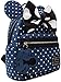 3D ears and bow; Denim zipper pull charm included; Dual adjustable shoulder straps; Top carry handle
