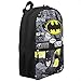 Batman backpack features padded adjustable shoulder straps, zip closure, 2 mesh side pockets, and top loop for hanging. Measures approximately 16"x12"x5".