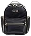 This modern diaper bag can be carried by the built-in handle or worn as a traditional backpack with comfortable and adjustable straps.The vegan leather exterior easily wipes clean.Measures 11.5" L x 7.5" W x 13.75" H