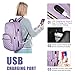 USB Charging Port & Luggage Strap: With an external USB charging port and built-in a charging cable inside, the purple backpack offers an easier way to charge smart phone, tablet or other electronic devices when carrying (Note: power bank is not included). The luggage strap of laptop backpack for women can be easily inserted and slide over the handle of a trolley or suitcase, makes your trip and travel more convenient wherever you go