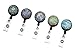 Badge reel diameter is 1 1/4" inch, max 27 inch retractable cord length.Package include 5 retractable badge reels with belt clip on the back.