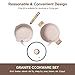 NESTING COOKWARE: Save space and make your kitchen look cleaner with the nesting cookware. The stylish removable handles with wood design are soft to the touch, and cool to handle. Perfect for tiny home and RV cookware, for small kitchens and living spaces.