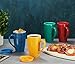 Coffee mug set includes 4 mugs (Blue, Red, Teal, Yellow).
