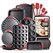 15-PIECE BAKING PANS SET NONSTICK: Whip up your favorite baked goods with our small, medium, and large baking sheets for oven, nonstick set of 3; plus a pizza pan, loaf pan, square pan, 2 round pans, 12 & 24 cup muffin pans, and 5 silicone spatulas.