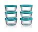 Set includes: two 4 oz. rectangle, two 1-cup round, 1.6-cup rectangle, 3.5-cup rectangle glass containers