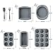 Set Includes: Two 8-in. Round Cake Pans, One Medium Loaf Pan, One 9x13-in. Cake Pan, One 12-Cup Muffin Pan, One 10x15-in. Baking Sheet