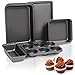 Perfect for Your Household: versatile 6 piece bakeware set includes (2) 17.3 by 11.75 inch cookie sheets, (2) 16.1 by 10.8 inch muffin pans, and (2) 12.2 by 10 inch round pans; plus, the set is stackable so you can easily store them in your pantry, closet, cabinet, or wherever else space is limited; we recommend hand washing for longer lasting use