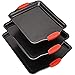 LONG LASTING NONSTICK COATING FOR EASY RELEASE: Featuring heavy-gauge premium steel with rolled-rim edges for comfort, our oven trays for cooking and baking are finished in the latest non stick coating inside and out for excellent food release of flawless cookies, soufflés, and custards. Our baking sheet non-stick material also ensures quick and easy cleanup.