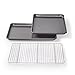 CONVENIENT COOLING RACK INCLUDED: A handy, chrome-plated, dishwasher-safe 9-inch x 14.5-inch cooling rack is included with this baking tins set.