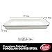 Our collection is safe for hot and cold serving; oven and warmer safe to 572 F degrees; Dishwasher safe; but enamelware is better handwashed; Not microwave safe