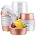 【4 Colors Mixed】: These dessert cups with lids comes with 5oz 100pcs Cups(25pcs Gold+25pcs Pink+25pcs Blue+25pcs White Black) +100pcs Plastic Lids, meet your diverse color needs