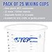 Mixing Cup Kit with 25 - 20 Ounce (600 ml) disposable flexible, clear graduated plastic mixing cups along with 25 mini wooden paint and liquid mix stick paddles.